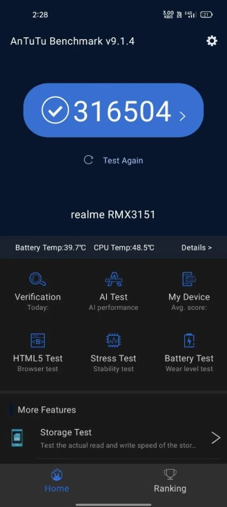 При игре в BGMI устройство стабильно выдавало 38-40 кадров в секунду на настройках Smooth + Ultra. Кроме того, температура также находилась под контролем, поэтому нет проблем с перегревом, о чем можно было бы предположить, поскольку это микросхема Mediatek.
