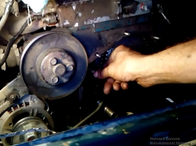 - Ослабляется шляпка натяжителя (ключем на 13), расположение которого находится возле помпы.