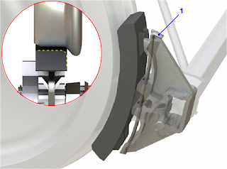 Тормозная колодка должна быть установлена так, чтобы округлая грань поверхности трения колодки была обращена к гребню колеса.